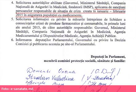 Astfel, membrii Comisiei se adresează Procuraturii Generale, dar și CNA să se implice. Totodată, autoritățile abilitate – Guvernul, Ministerul Sănătății și Compania Națională de Asigurări în Medicină trebuie să identifice persoanele nemijlocit responsabile și să aplice sancțiuni.
