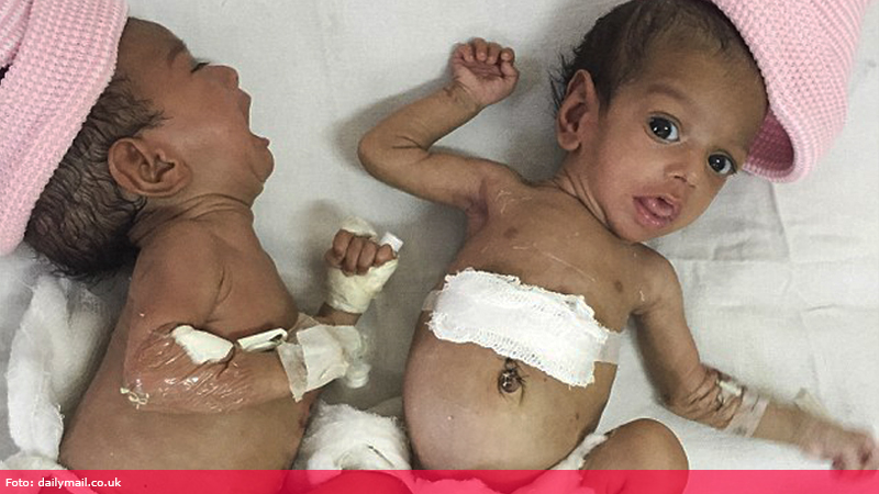 Surorile Jannat și Mannat s-au născut cu pieptul și abdomenul lipit - o afecțiune cunoscută sub numele de omphalopagus. Ambele copile cântăreau doar 2 kilograme.