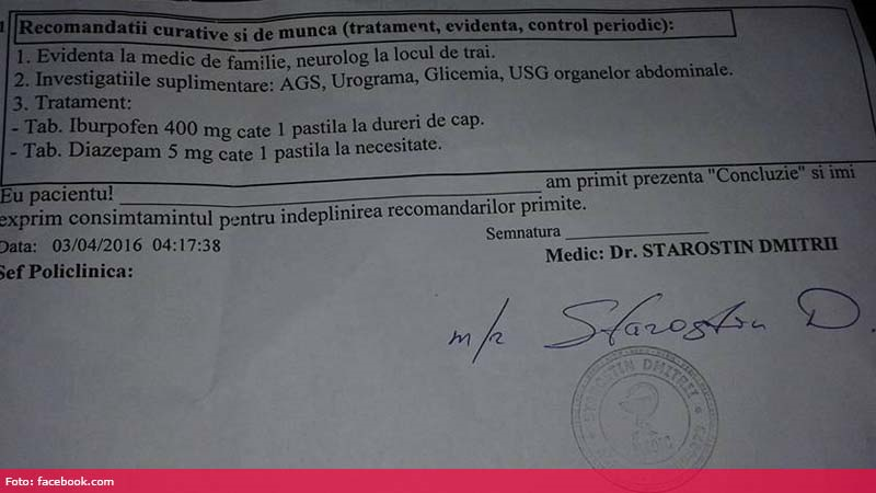 Opinia publică din Moldova a fost astăzi din nou bulversată de un caz de neglijență medicală. O tânăra, în vârstă de 18 ani, din Chișinău a fost la un pas de deces, pentru că medicul rezident care a consultat-o i-a dat un tratament greșit, a vorbit arogant și a trimis-o acasă în stare gravă. Acesta este angajat al Institutului de Neurologie și Neurochirurgie. Tânăra a postat întreaga istorie pe Facebook, iar astăzi ministrul Sănătății, Ruxanda Glavan a cerut exmatricularea rezidentului și concedierea lui de la instituția medicală.
