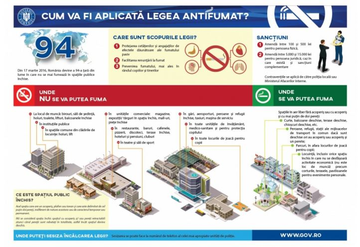 Deși a fost elaborată și adoptată mult mai târziu decât în Republica Moldova, Legea Antitutun din România va fi implementată mult mai rapid. În țara vecină, începând de mâine este interzis fumatul în toate localurile publice din țară. Pentru a informa populația cu privire la noile schimbări în domeniul controlul tutunului, autoritățile din România au elaborat un ghid care arată locurile unde fumatul va fi permis, unde acesta va fi interzis, sancțiunile aplicabile, dar și obligațiile administratorilor spațiilor respective, scrie Digi24.