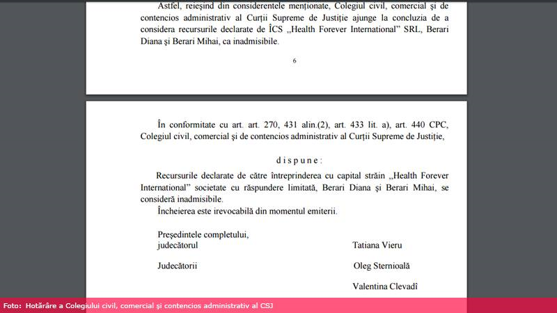 „CSJ a declarat inadmisibile recursurile înaintate de către familia Berari și Spitalul Internațional Medpark. Hotărârea primei instanțe și decizia Curții de Apel a intrat în vigoare. Este irevocabilă, definitivă și executorie. Astfel, s-a pus punct pe acest caz. De aici rezultă că spitalul este vinovat”, a declarat pentru Sănătate INFO Vasile Ciupercă.