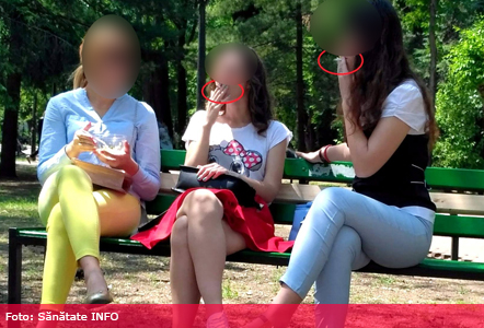 Și alți doi tineri, de vreo 20 de ani, stau fără jenă cu țigara în mână. Cornel spune că prima dată aude că fumatul dăunează sănătății, iar colegul său, la vederea aparatului de fotografiat, își ascunde țigara.
