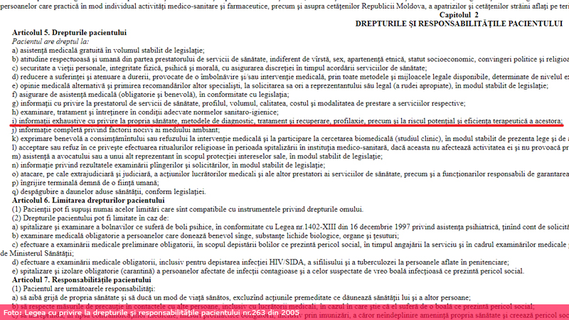 „De fiecare dată când părintele nu înțelege ceva, lucrătorul medical trebuie să-i explice până la capăt. Potrivit articolului 11 al legii menționate, regula generală este că prestatorii asigură accesul nelimitat la informația privind propriile date medicale”, a adăugat Doronceanu.