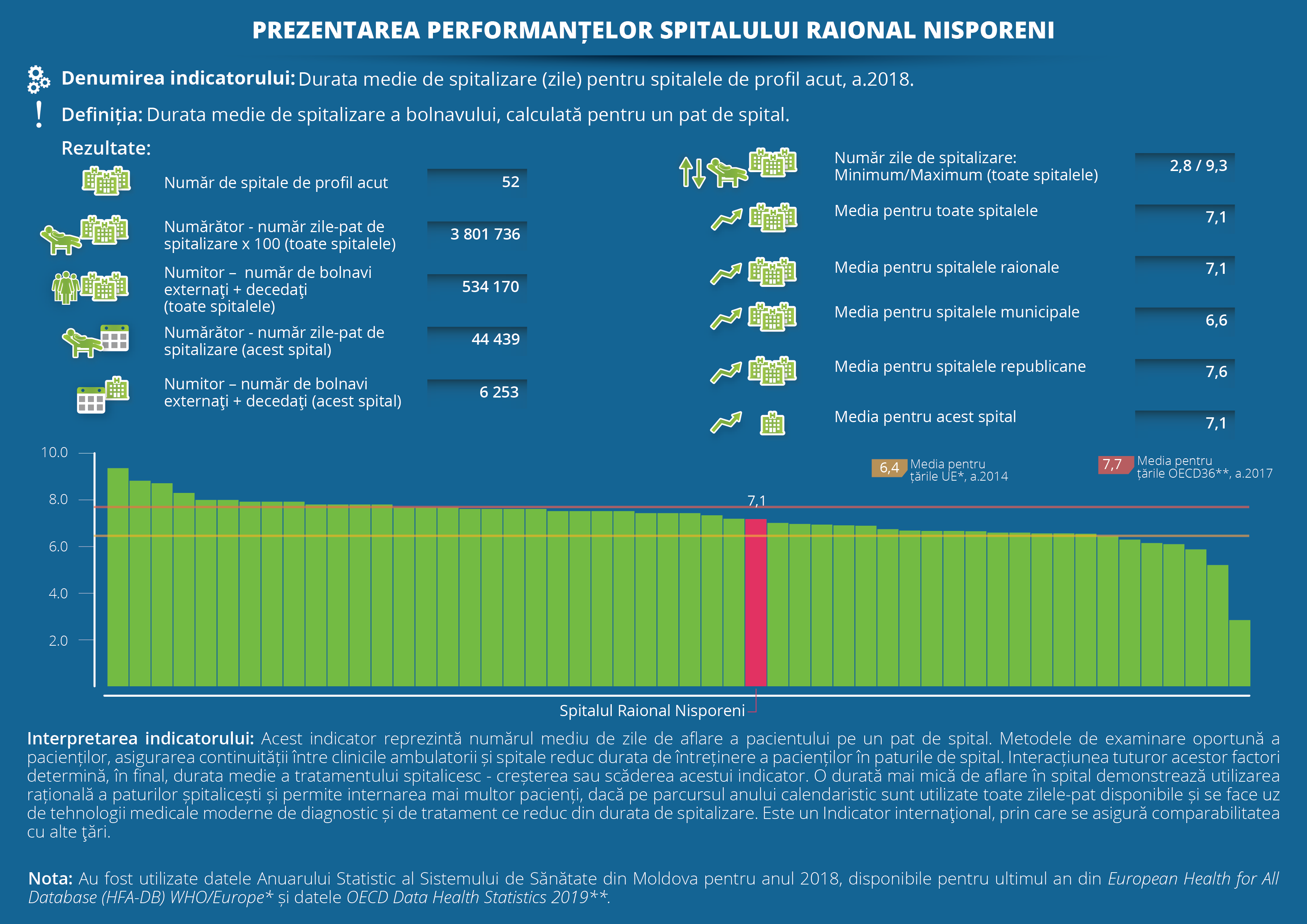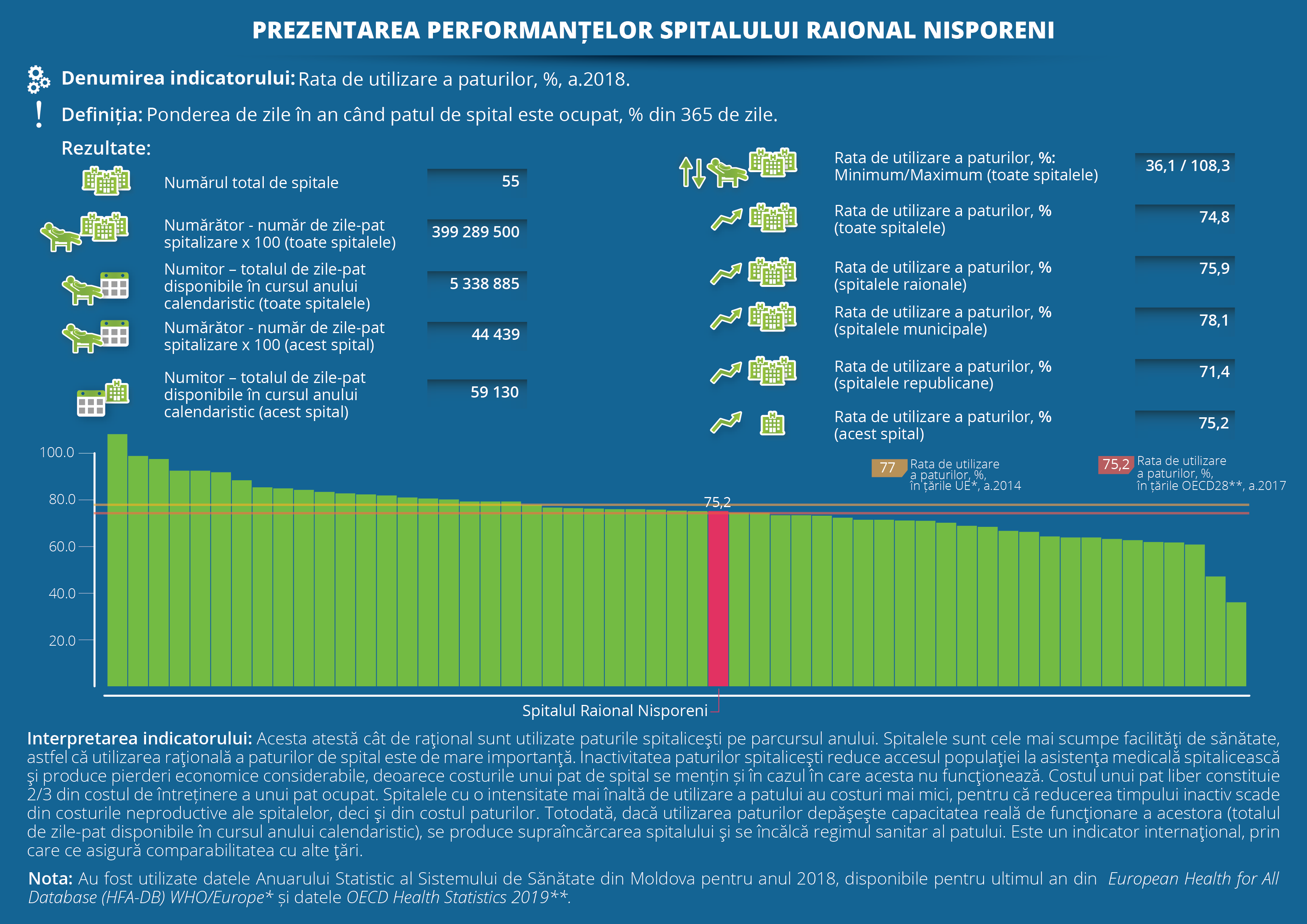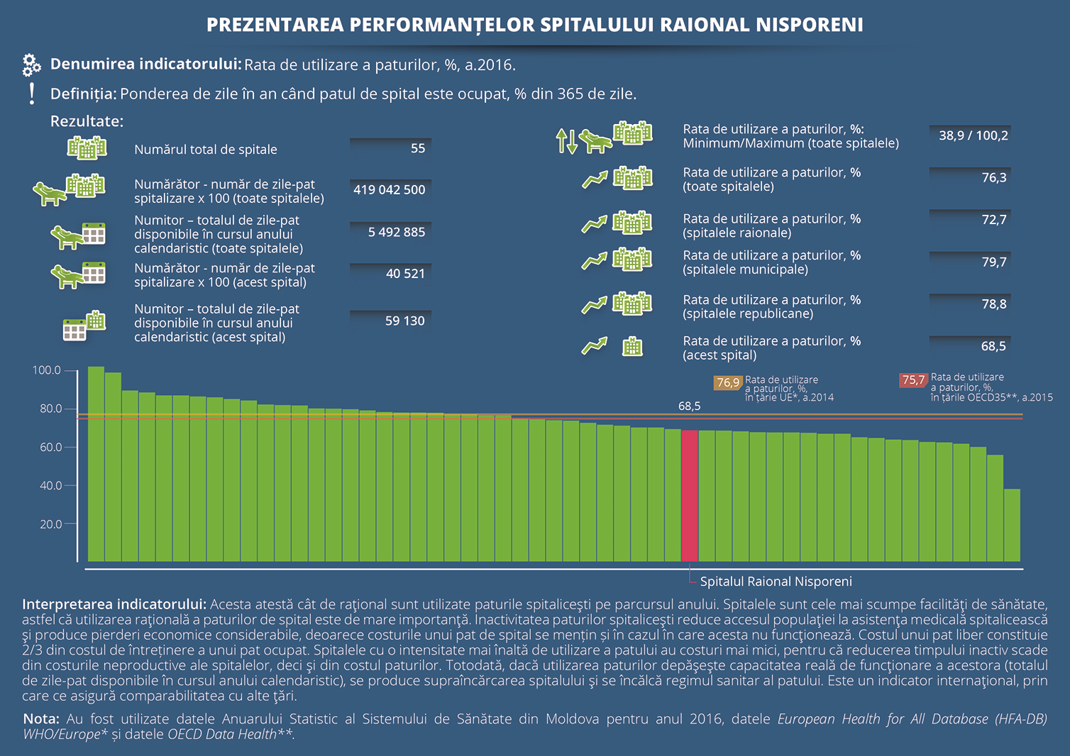 Totodată, lipsa uniformității datelor pentru evaluarea performanței tuturor spitalelor publice determină imposibilitatea comparării spitalelor într-un cadru operațional unic și din aceste considerente, a inclus doar spitalele raionale.
