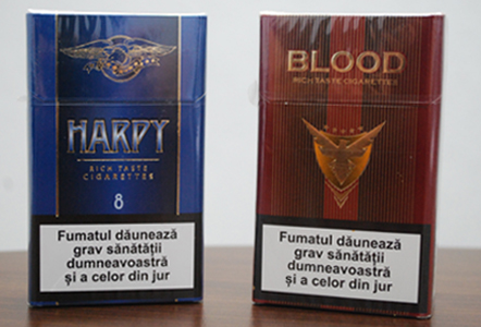 Acestea sunt vândute la un preț modest, pentru „privilegiile” pe care le sugerează. Blood, ceea ce înseamnă din engleză sânge și culoarea roșie a pachetului creează senzația că fumatul nu înnegrește, de fapt, plămânii și nici nu încetinește circulația sângelui, ci din contra generează doar sănătate. Cea de-a doua marcă – Harpy ilustrează un vultur, iar culorile folosite sunt albastru și auriu. Folosirea acestor culori în designul pachetelor de țigări nu este recomandată de Convenția Cadru pentru Controlul Tutunului, document pe care Republica Moldova l-a ratificat.