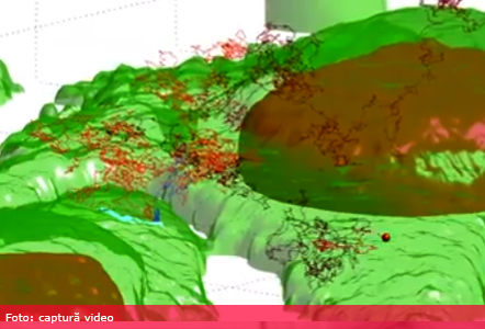Imaginile fără precedent, care au fost filmate în tehnologia 3D arată cum o microparticulă (punctul) se apropie de o celulă (pata verde) și încearcă să pătrundă în nucleul acesteia. „Urmărirea mișcărilor particulei ne-a permis să identificăm structuri foarte fine, cu o precizie de aproximativ 10 nanometri, care pot fi observate doar cu un microscop electronic”, a explicat Welsher.