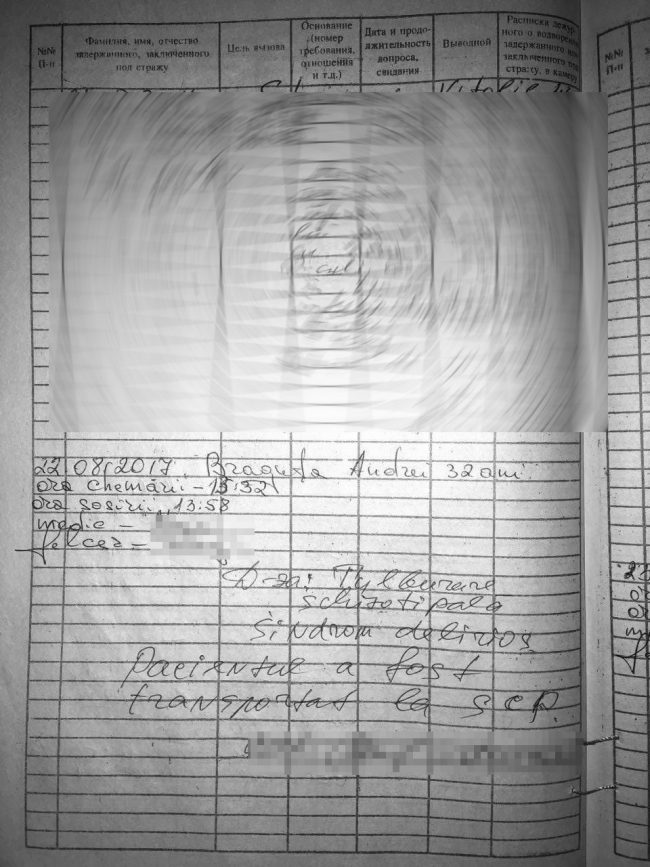 Două echipe de Urgență au fost chemate în data de 22 și 23 august în izolatorul de detenție provizorie a Direcției de Poliției a Capitalei, acolo unde se afla Andrei Brăguța. Primul echipaj – din care făceau parte un medic și un felcer - a sosit la ora 13.58 și au constatat că Andrei avea tulburare schizotipală și sindrom delirios. Tulburarea schizotipală nu trebuie confundată cu schizofrenia care este, conform clasificărilor de specialitate, „o psihoză intensă”, caracterizată printr-o stare „mintală severă”, când se pierde în totalitate contactul cu realitatea. În tulburarea schizotipală persoana are fobie socială, este deranjată de prezența oamenilor, este anxioasă, depresivă și are o gândire distorsionată. Poate crede în extratereștri, că este telepată sau poate înțelege greșit evenimentele care au loc în viața lui. Medicul al cărui nume nu îl vom divulga a constatat că Brăguța trebuie dus la Spitalul Clinic de Psihiatrie, însă angajații izolatorului s-au opus ca pacientul să fie scos de acolo. În registrul de evidență a acordării primului ajutor medical persoanelor deținute medicii au indicat că este refuzată internarea pe motiv de lipsă a escortei și și-au pus semnăturile. Semnăturile altor persoane lipsesc.