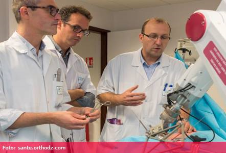 Stabilitatea spatelui este asigurată datorită șuruburilor iliace-sacre, solide și recunoscute ca fiind cea mai bună metodă de corecție a părții oblice a oaselor bazinului. De asemenea, tijele pot evita blocarea unor vertebre care mai pot crește, lăsând mai mult spațiu între ele. Pe de o parte, aceste șuruburi sunt voluminoase în comparație cu mărimea mică a oaselor copilului (7 mm în diametru pentru a fi plasate într-un coridor osos de 8 mm), iar pe de altă parte, ele se află în proximitatea rădăcinilor nervoase. Anume, aici intervine robotul dezvoltat de compania de la Montpellier, Medtech, cumpărată de americanul Zimmer Biomet în 2016.