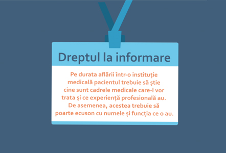 Pe durata aflării într-o instituție medicală pacientul trebuie să știe cine sunt medicii care-l vor trata și ce experiență profesională au. De asemenea, toate cadrele medicale trebuie să poarte ecuson cu numele și funcția ce o au.